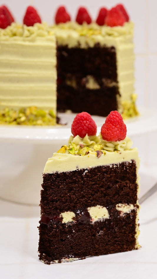 Chocolate, Raspberry, & Pistachio Celebration Cake