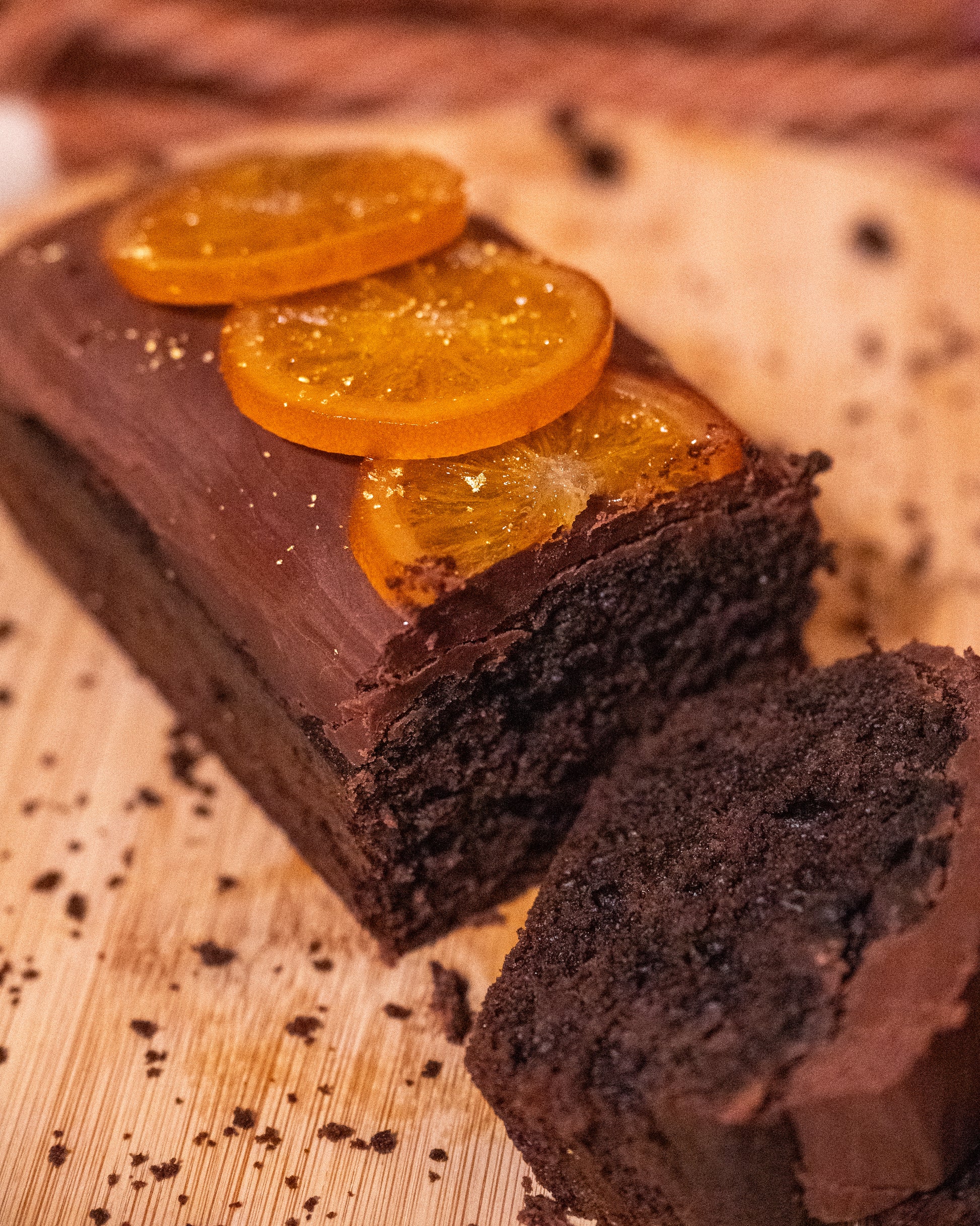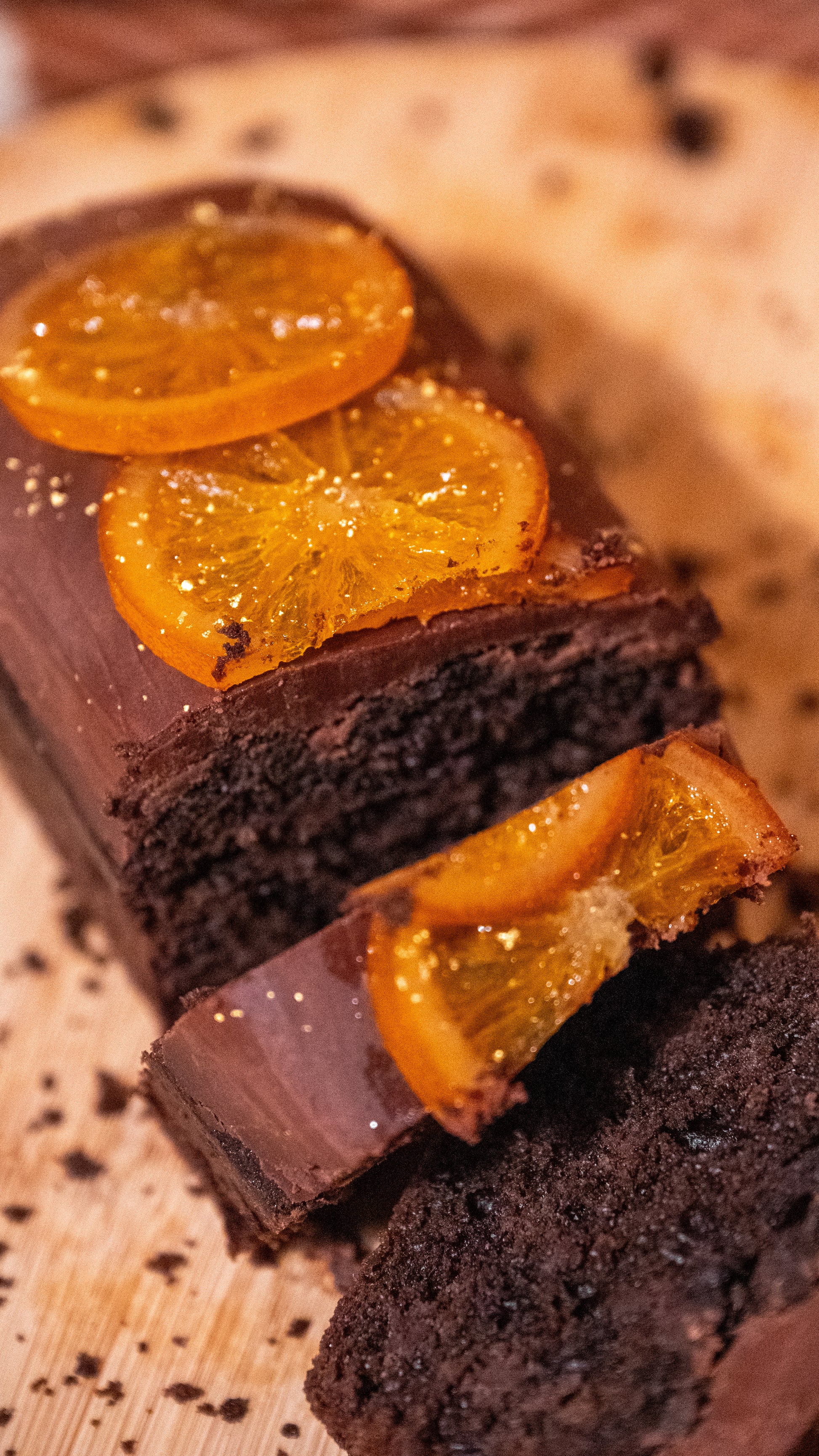 1lb Chocolate orange loaf cake filled with chocolate chips, topped with chocolate orange ganache and candied orange slices. Perfect for smaller gatherings!